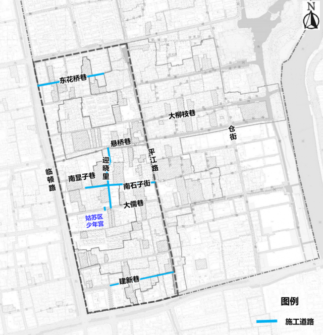 根据苏州平江历史文化街区保护提升计划,需对平江历史街区东花桥巷、迎晓里、南显子巷、南石子街、建新巷东段、大儒巷(点位距临顿路-大儒巷路口约140米)等进行保护提升施工。