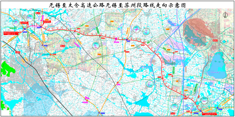 作为江苏省高速公路网规划“十横”重要组成,锡太高速公路起自与沪蓉高速交叉处的无锡北枢纽,接已建成的锡宜高速公路,向东经无锡惠山新城、锡北、东港和羊尖,跨越望虞河后,向东南经苏州辛庄和阳澄湖西,止于苏台高速交叉处的湘城西枢纽