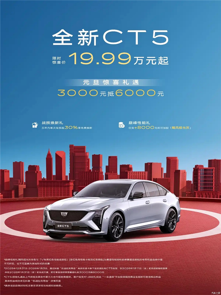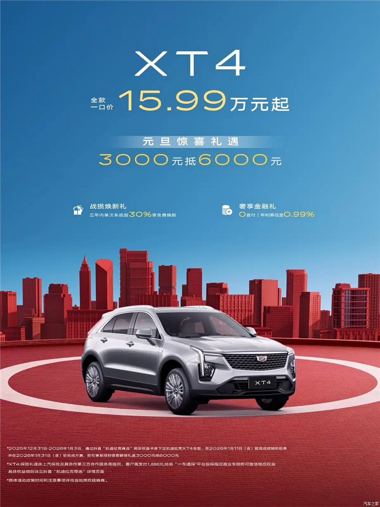 具体来看,凯迪拉克CT5限时惊喜价19.99万元起,元旦惊喜礼遇3000元抵6000元。凯迪拉克XT5限时惊喜价22.99万元起,元旦惊喜礼遇5000元抵1万元。凯迪拉克CT6全款一口价28.99万元起,元旦惊喜礼遇5000元抵1.5万元。凯迪拉克XT4全款一口价15.99万元起,元旦惊喜礼遇3000元抵6000元。