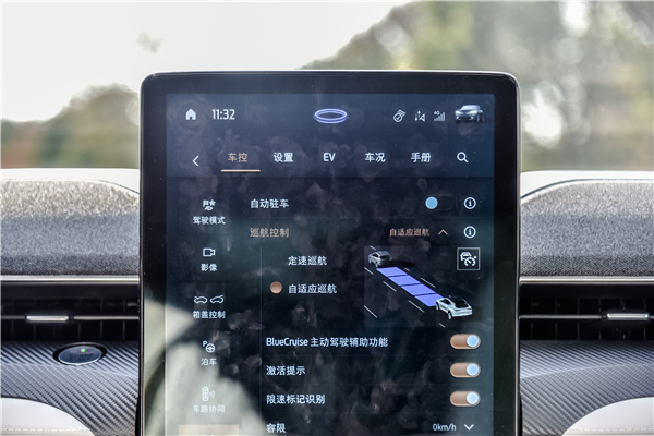 车机系统整体操作比较容易上手,没有太多繁琐重复的来回切换,显示屏幕的分辨率很高,触控反馈也很及时。在调整到驾驶模式的选择时,福特Mustang Mach-E独特的三种驾驶模式让我们对新能源有了全新的认识:细语、入胜和不羁。细雨模式,驾驶的时候不会像其他电车一样加速特别敏感,让用户感到不适甚至晕车,电门踏板更加轻柔、舒适。不羁模式,电门的相应速度非常快,动力随叫随到,可以在这个模式下享受激情的驾驶乐趣。而入胜模式,兼容了细雨的舒适和不羁的动力,在驾驶过程中能够让你感受到“人车合一”的驾驶感受!也是Mustang Mach-E在车辆调教上花了最多经精力的地方。