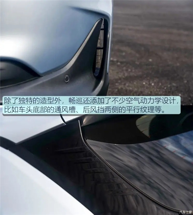 从侧面看,畅巡看起来十分低矮修长,其高度为1538mm,风阻系数为0.304Cd,基本介于轿车和SUV之间。