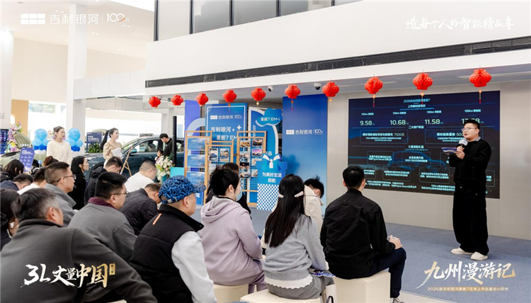 下午的品鉴会现场氛围热烈,嘉宾们在签到区领取专属伴手礼后,沉浸式感受了活动现场的银河主题布置。在精彩的车型讲解环节,讲师从设计、动力、智能等维度全面解析新车亮点,让现场嘉宾对这款升级之作有了深入了解。随着幕布缓缓拉开,2026 款吉利银河星舰 7 在聚光灯下正式揭幕,新增的星海蓝外观色搭配星环式银河涟漪贯穿灯带,瞬间成为全场焦点。随后公布的限时购车政策引发阵阵掌声,价值 6000 元超级置换补贴、7500 元领航辅助驾驶(NOA)服务及购置税兜底政策等多重权益,进一步降低了购车门槛。首批车主交车仪式上,厂家领导为车主代表颁发钥匙,象征着 2026 款银河星舰 7 正式开启苏州市场的美好征程。媒体实测分享环节中,参与上午双城打卡的记者们分享了驾驶体验,3.11L 的亏电油耗数据、平顺的动力输出及智能的辅助驾驶功能获得一致好评,团购环节更是掀起订车热潮,现场订单量持续攀升。
