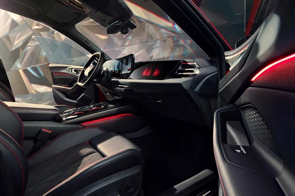 这款车拥有专属的“竞速红”车色可选,同时也提供“飓风灰”车色作为选择。此外,该车会配备件竞速套件,并拥有专属的竞速曜黑后扰流板,配合20英寸RS风格轮圈以及红色刹车卡钳,十分运动。车内的风格也是专属设计,采用竞速套件Microfiber超纤绒及Laedana超纤皮双拼材质配置内饰风格,车顶为Microfiber超纤绒,此外还有竞速碳纤维饰板。不过由于采用了独特的面料,所以无法配备座椅按摩和通风功能。其他配置方面,这款车会配备B&O 3D环绕音响(20扬声器),但华为乾崑智辅助驾驶系统没有出现在这款车上,会提供倒车影像以及普通的泊车辅助功能。
